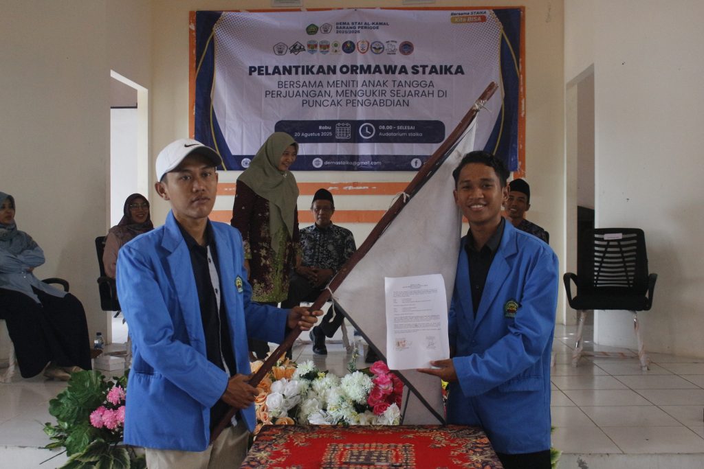 Rembang — Sekolah Tinggi Agama Islam Al-Kamal Sarang Rembang kembali menorehkan sejarah baru diawal Tahun Akademik 2025/2026 dengan terselenggaranya acara Pelantikan Pengurus Organisasi Mahasiswa Periode 2025/2026. Kegiatan ini berlangsung khidmat di Aula STAI Al-Kamal Sarang Rembang pada hari Rabu, 20 Agustus 2025, dengan mengusung tema “Bersama Meniti Anak Tangga Perjuangan, Mengukir Sejarah di Puncak Pengabdian.”